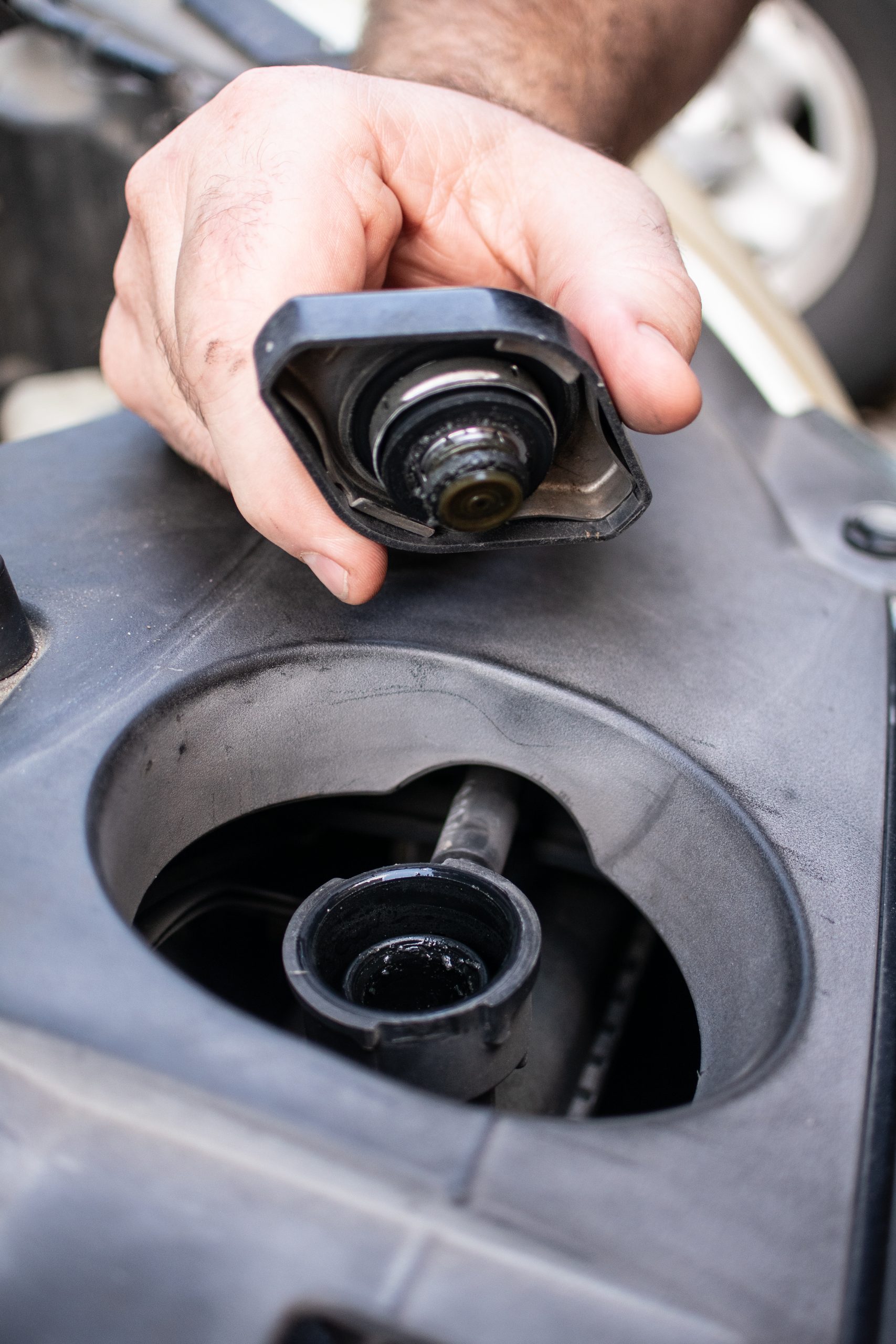 Many times we see cars with full coolant reservoirs and very low radiators. If your car does not have a pressurized coolant reservoir it is very important to check the coolant level in both the reservoir and the radiator.